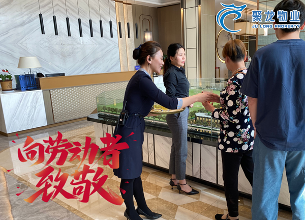 “金三銀四紅五月”,“五一”向來是樓市傳統(tǒng)的熱銷節(jié)點。對于濱江悅城案場服務(wù)工作者來說,是最忙碌的時刻。為保障熱銷節(jié)點的順利進行,聚龍物業(yè)濱江悅城項目部全體員工,堅持在崗,用心用情做好案場服務(wù),讓客戶感受如家般的溫暖,用堅守詮釋了物業(yè)人的勞動節(jié)。