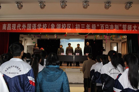 3月7日下午,南昌現(xiàn)代外國(guó)語學(xué)校(象湖校區(qū))初三年級(jí)全體師生和部分家長(zhǎng)代表共600多人,齊聚報(bào)告廳一同向中考百日宣誓。慷慨激昂的誓言,久久在象湖湖畔回蕩。