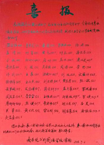 2014年中考已經(jīng)落下帷幕,王桂紅的辦公桌上放著一大疊中考資料,既有各班級、各學(xué)生的中考成績總結(jié),也有與其他學(xué)校中考成績的對比分析資料。王桂紅說,對考試成績做總結(jié)分析是非常重要的一項教研工作。每次考試,學(xué)校都會精心組織教師進(jìn)行數(shù)據(jù)分析,每次分析也是精細(xì)到每個班級、每位學(xué)生、每門學(xué)科,并從分析中汲取經(jīng)驗教訓(xùn),為以后的工作做好參謀。戒驕戒躁、精益求精,這也正是南昌現(xiàn)代外國語學(xué)校象湖校區(qū)連續(xù)兩年中考取得佳績的另一重要原因。