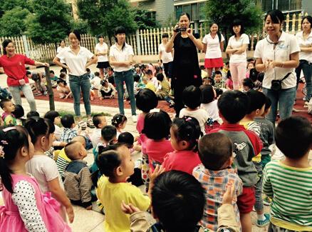 9月30日,為了迎接中華人民共和國65華誕,江西園外園幼兒園舉行了“愛祖國愛家長”慶國慶歌詠會(huì)。孩子們在老師的指揮下盡情放歌,大班組表演了《大中國》、《愛我中華》、《一二三四歌》、《聽媽媽講那過去的事情》、《國歌》、《我是小海軍》,中小班演唱了《祖國祖國多美麗》、《紅太陽照山河》、《我愛北京天安門》、《娃哈哈》、《頌祖國》。他們稚嫩的聲音和燦爛的笑臉表達(dá)了對祖國的熱愛,也迎來陣陣掌聲和歡呼聲?;顒?dòng)現(xiàn)場歌聲、笑聲、歡呼聲匯成了一片歡樂海洋。