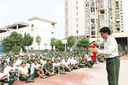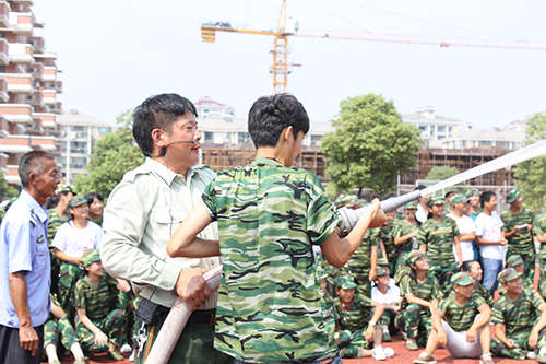 學(xué)院武裝部部長周圣華向2015級(jí)新生就如何報(bào)火警、火災(zāi)的預(yù)防、火場自救及逃生方法等消防安全基本常識(shí)進(jìn)行了講解。周部長現(xiàn)場演示了滅火器的操作程序和消防水帶、消防槍的正確使用方法,同學(xué)們一一上前體驗(yàn)。