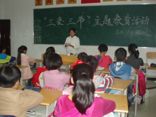 各班以班級為單位都開展了“三愛 三節(jié)”主題班會活動。活動形式多樣,有的以知識競答方式普及生活中的三愛三節(jié)知識,有的用多媒體播放愛學習、愛勞動、愛祖國的典型事例;有的以演講形式聯(lián)系身邊節(jié)水、節(jié)電、節(jié)糧的故事進行講解,闡述自己的收獲;有的制作手抄報反映自己對“三愛三節(jié)”的理解。