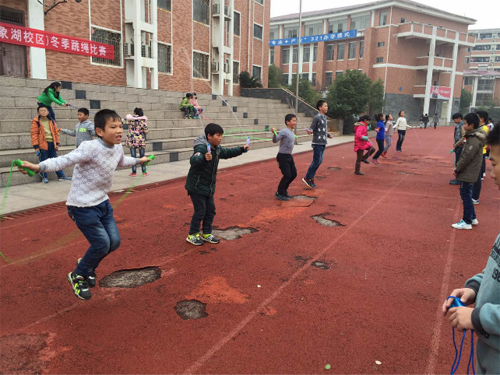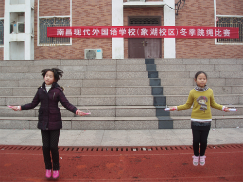為更好地開(kāi)展冬季體育運(yùn)動(dòng),增強(qiáng)學(xué)生的體質(zhì),培養(yǎng)學(xué)生團(tuán)結(jié)、拼搏的精神,12月23日,南昌現(xiàn)代外國(guó)語(yǔ)學(xué)校(象湖校區(qū))舉行了一場(chǎng)緊張、激烈的跳繩比賽。操場(chǎng)上一片歡騰景象,一根根彩繩、一個(gè)個(gè)純真的笑臉在燦爛的陽(yáng)光下飛舞、綻放?!案骶透魑?,預(yù)備——跳?!薄班赅赅辍崩K子不斷拍打地面,啦啦隊(duì)更是不甘示弱,喊得一陣比一陣響,喊得一陣比一陣亮。這次跳繩比賽凝聚了老師,同學(xué)的熱情。比賽前,為集體爭(zhēng)光的堅(jiān)強(qiáng)信念每天激勵(lì)著同學(xué)們努力練習(xí),你追我趕,積極備戰(zhàn)。比賽中,各個(gè)同學(xué)精神抖擻,信心十足,賽場(chǎng)上龍騰虎躍,身手不凡。最終由四(7)班的鄔梓賢與六(2)的徐宇豪分別以一分鐘雙腳跳216與210的好成績(jī)共同獲得一等獎(jiǎng)。