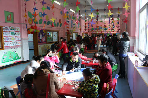 本次活動內(nèi)容共包括教學(xué)展示、老師舞蹈表演、親子游戲以及包餃子四個內(nèi)容。其中親子游戲掀起了本次活動的高潮,在親子游戲中,寶寶和家長們共同完成路障游戲任務(wù),家長的著急,幼兒的認(rèn)真,惹得場外的觀眾哈哈大笑,活動場地上隨處可見孩子和家長爽朗的笑聲和有力的加油聲。 每一輪游戲結(jié)束后,冠軍組的家庭和參與組家庭都會贏得場外的觀眾的喝彩。整個活動中,家長、孩子、老師臉上都洋溢著幸??鞓返男θ?。
