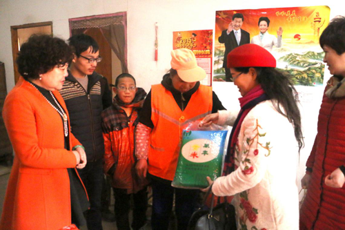 學(xué)校董事長劉雁華向?qū)W生家庭送上慰問金和慰問品
