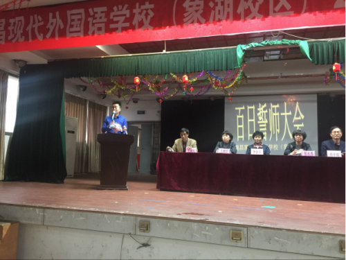 陽(yáng)春三月,春寒料峭,憧憬六月,激情滿(mǎn)懷。為鼓舞初中畢業(yè)班學(xué)生的斗志,讓他們揚(yáng)起自信的風(fēng)帆,信心百倍的迎接中考,2016年3月8日下午,南昌現(xiàn)代外國(guó)語(yǔ)學(xué)校(象湖校區(qū))隆重舉行“2016年中考百日沖刺誓師大會(huì)”,學(xué)校行政領(lǐng)導(dǎo),初三全體教師、同學(xué)及家長(zhǎng)代表500余人參加了這次大會(huì)。