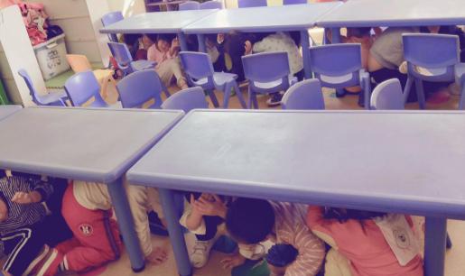 下午2點(diǎn)30分,隨著一陣急促的鈴聲,演習(xí)開始了。孩子們在老師的引導(dǎo)下,紛紛選擇桌子、廁所管道等地方進(jìn)行躲避,“抱頭”、“閉眼”、“蹲下”,老師們不時(shí)的提醒著孩子們。兩分鐘后,緊急鈴聲再次響起,孩子們在老師的帶領(lǐng)下,快速有序地經(jīng)過安全出口,撤離到安全區(qū)域。