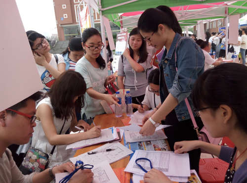2016年5月7日,江西科技師范大學(xué)在紅谷灘紅角洲校區(qū)C樓廣場(chǎng)舉行2016屆畢業(yè)生大型供需見面會(huì)。應(yīng)該校招生就業(yè)辦邀請(qǐng),南昌現(xiàn)代外國語學(xué)校在招聘會(huì)現(xiàn)場(chǎng)開設(shè)展位,進(jìn)行專場(chǎng)招聘。南現(xiàn)外校辦周主任帶領(lǐng)高中部多名教師赴江西科技師范大學(xué)開設(shè)專場(chǎng)招聘。