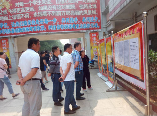 上午8:30,陸陸續(xù)續(xù)有家長到校,他們邊參觀學(xué)校的校容校貌,邊觀看學(xué)校成就展板、學(xué)校班級活動展板、受表彰學(xué)生展板和學(xué)生的獲獎作品展。
