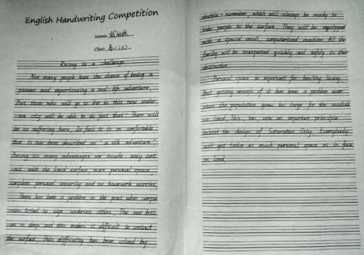 本次書寫比賽得到了老師和學(xué)生們的高度重視和積極響應(yīng)。許多學(xué)生提前就進(jìn)入比賽狀態(tài),高標(biāo)準(zhǔn)嚴(yán)格要求自己。比賽過程中,學(xué)生們一絲不茍、認(rèn)真書寫,充分展現(xiàn)了自己的書寫天賦。他們的作品書寫漂亮美觀,內(nèi)容充實(shí)完整,彰顯出英語書法藝術(shù)之美。這給其他學(xué)生樹立了一個(gè)學(xué)習(xí)的好榜樣!