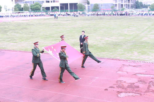 國歌奏畢,國旗飄揚。省教育廳督導(dǎo)專員兼學(xué)院黨委書記周瑾同志向全體師生莊嚴宣布江西省工商職業(yè)技術(shù)學(xué)院第七屆田徑運動會正式開幕。
