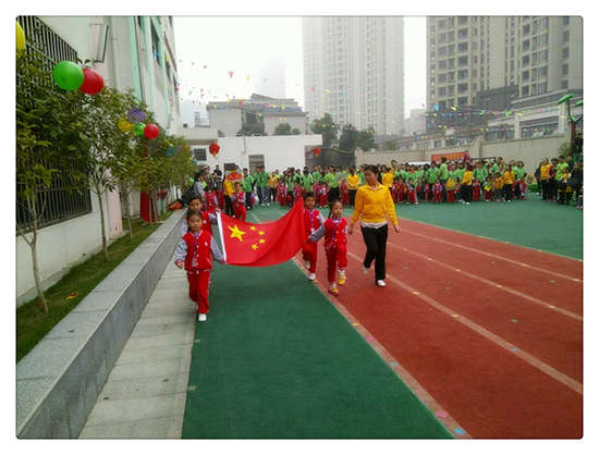 11月19日9:30分,主持人宣布親子運(yùn)動(dòng)會(huì)開(kāi)始,首先向主席臺(tái)走來(lái)的是護(hù)旗隊(duì):他們是大班的驕傲,他們正邁著整齊、矯健的步伐向主席臺(tái)走來(lái)。他們秉承奧運(yùn)精神:更快、更高、更強(qiáng)!