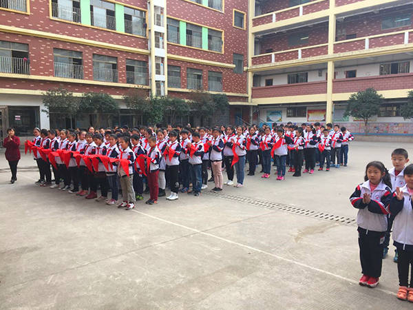 儀式中,歌聲嘹亮,隊(duì)旗、紅領(lǐng)巾格外鮮艷,在活動(dòng)中,由六年級的老隊(duì)員為116名新隊(duì)員佩戴了紅領(lǐng)巾,全體新入隊(duì)的同學(xué)在大隊(duì)輔導(dǎo)員謝珊珊老師的帶領(lǐng)下,在莊嚴(yán)的隊(duì)旗下,高高地舉起右手大聲宣誓:“時(shí)刻準(zhǔn)備著,為共產(chǎn)主義事業(yè)而奮斗!”。整個(gè)入隊(duì)儀式規(guī)范且隆重,洋溢著濃濃的溫暖之情,孩子們無比幸福和自豪的眼神告訴我們,他們定會(huì)在星星火炬的指引下,牢記黨的教誨,全面發(fā)展,茁壯成長。