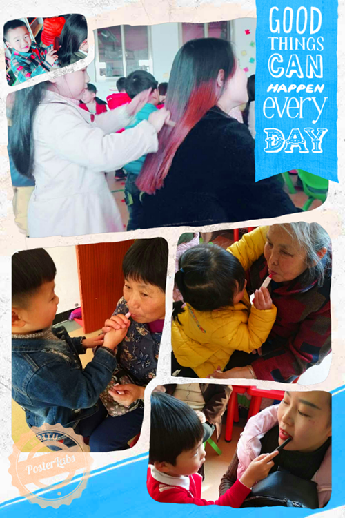 “平日里,奶奶、外婆、媽媽照顧我可辛苦了,今天就讓我來為你們服務(wù),因?yàn)槲乙呀?jīng)長大了,可以孝敬你們了!”活動當(dāng)天,孩子們和家長其樂融融,為了感恩自己的親人,孩子們用他們稚嫩的小手,給她們按摩、涂唇膏、梳頭發(fā)……還一起玩起了親子游戲,不僅增進(jìn)了親情,也讓孩子們記住了這個有意義的日子。