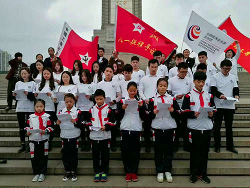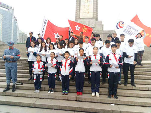 4月11日上午南昌現(xiàn)代外國(guó)語(yǔ)學(xué)校(迎賓校區(qū))部分中小學(xué)生在校領(lǐng)導(dǎo)的帶領(lǐng)下,乘車(chē)前往南昌八一起義紀(jì)念塔下參加了“為紀(jì)念建軍90周年,尋訪八一征程路中國(guó)夢(mèng)鐵軍情”活動(dòng)。