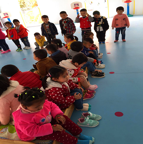 1、首先上場的是小班,競賽項目“穿脫鞋、褲子”,幼兒將自己的鞋子、褲子先脫下再進行比賽,看誰能夠在最短的時間內(nèi)穿的最整齊。