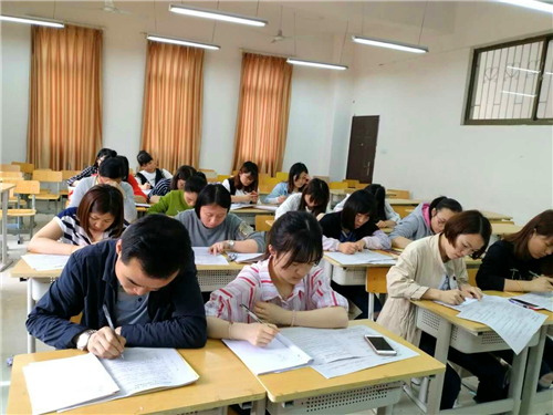 隨著一聲清脆的鈴響,老師們就低頭“唰、唰”地寫了起來,教室里頓時(shí)鴉雀無聲。學(xué)校共有25人參加測試,有兩位老師得了雙百,平均分在90分以上的有20人,占總?cè)藬?shù)的80%。
