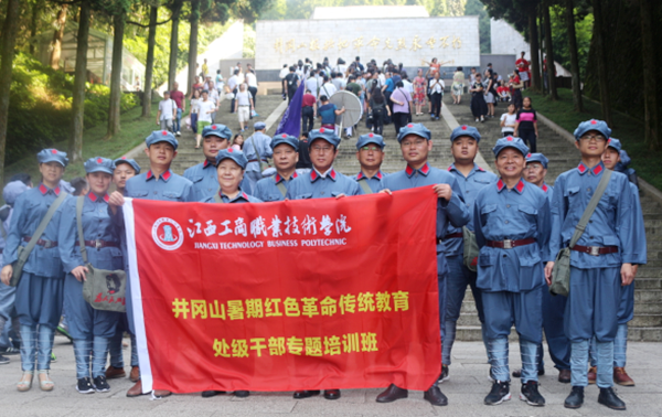 按照工商學院黨委《關(guān)于開展紀念“三個90周年” 、喜迎“十九大”主題活動的通知》要求,為激勵廣大黨員干部為學院建院升本及內(nèi)涵建設(shè)克服苦難與貢獻力量,進一步貫徹落實學校事業(yè)發(fā)展“十三五”規(guī)劃,加強領(lǐng)導班子和干部隊伍建設(shè),不斷提高領(lǐng)導干部的黨性修養(yǎng)、理論素養(yǎng)、專業(yè)水平和開展思政工作的能力,增強服務(wù)師生能力和履職本領(lǐng),結(jié)合“兩學一做”學習教育制度化常態(tài)化和學校工作實際,2017年7月22日至24日,該院中層以上干部,一齊前往井岡山進行紅色革命傳統(tǒng)教育。