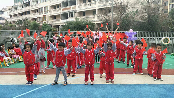 活動由小四班合唱的《國旗國旗真美麗》拉開序幕,其他小朋友們都在一旁為他們加油打氣,每位幼兒手中都拿了一面小紅旗跟隨著音樂在舞臺中間搖擺、歌唱。接下來由小三班帶來了動力十足的《上學歌》,緊隨其后的是小二班為大家獻上的一首《祖國祖國,我們愛你!》,音樂一響起小朋友們很快就跟上了節(jié)奏,高聲歌唱“祖國、祖國,我們愛你!”小一班的《讓我們蕩起雙槳》讓所有小朋友們和著音樂在音樂的海洋里搖曳著,好像真的坐在了船上蕩起了雙槳。中一的唱跳表演《我愛北京天安門》更是掀起了活動的高潮。