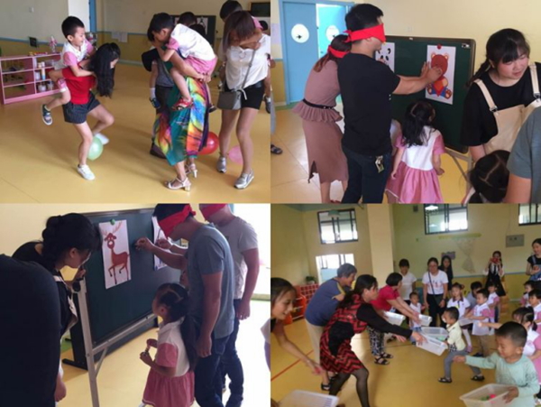 接下來,家長們帶著小朋友回到自己的教室,由老師組織親子游戲,踩氣球、接力賽等豐富多樣的親子活動讓孩子們和家長更加拉近了距離。而其余的老師們則利用這個間隙,緊鑼密鼓地布置好美食現(xiàn)場。