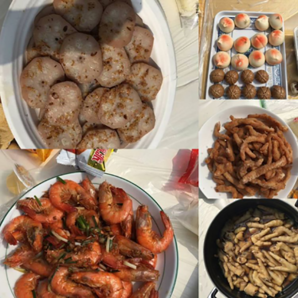 在親子活動結束后,愉快地美食分享開始了,除了家長們自備的美食,幼兒園還準備了寶貝們的日?;锸常热纾浩卟食达?、肉末蒸蛋、手工餛飩、紅燒雞翅根、粉蒸肉等,請家長品嘗、體驗,從而了解寶貝在幼兒園的伙食狀況。