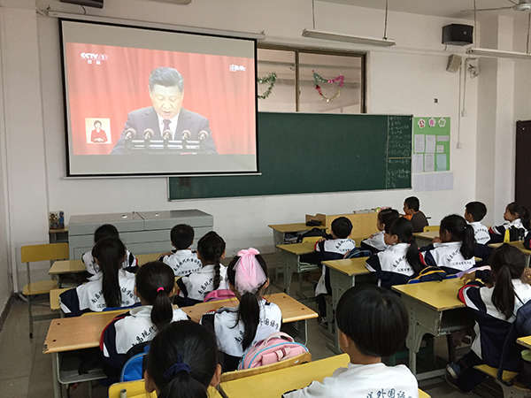 2017年10月18日,世界矚目的中國共產(chǎn)黨第十九次代表大會召開了。南昌現(xiàn)代外國語象湖學(xué)校組織全校學(xué)校師生觀看了黨的十九大開幕式電視實況直播。
