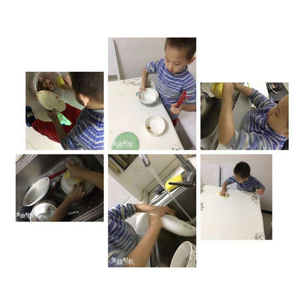 孩子幫媽媽做家務(wù),不僅能使其養(yǎng)成勤勞的習(xí)慣,還培養(yǎng)了孩子們的責(zé)任感和自信心,同時(shí)孩子和爸爸媽媽一起感受愛的教育,共同上了一堂愛的教育課。