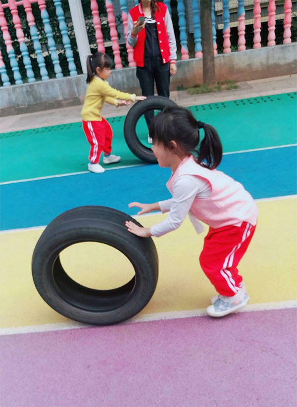 因此,江西迪斯尼·金沙園每周一都會開展陽光體能課,小朋友們每周都會接觸不同的幼兒體育健身器具。今天的陽光體能課主題是運(yùn)動輪胎,寶貝們利用輪胎進(jìn)行搬運(yùn)接力,穿越輪胎,跳躍輪胎等體能項(xiàng)目,寶貝們都表現(xiàn)的很活躍。個別小朋友剛開始的時候,可能由于沒有這么近距離的接觸過輪胎,有點(diǎn)不知所措,就只是傻傻的站在旁邊,通過體能老師的示范表演后,都慢慢開始嘗試著玩耍。小朋友們通過和其他小朋友的互動,表現(xiàn)得越來越好,所有的體能項(xiàng)目都完成的很好,每個小朋友都綻放出燦爛的笑容。