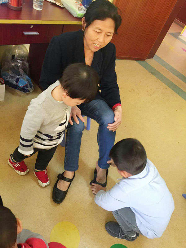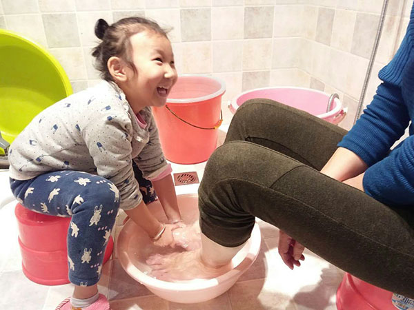 中、大班級的老師根據(jù)幼兒特點設(shè)計了豐富的活動方案,有的為老人唱敬老歌曲,有的玩祖孫親子游戲,有的組織孩子為老人制作愛心禮物……小班孩子們?yōu)闋敔斈棠檀繁?、揉腿、唱歌,引來爺爺奶奶們陣陣歡笑??粗粋€多月前來園還哭哭啼啼的寶貝們變得那么乖巧,老人們感慨萬分,在欣慰的同時,對老師們耐心細致的工作也給予了肯定。