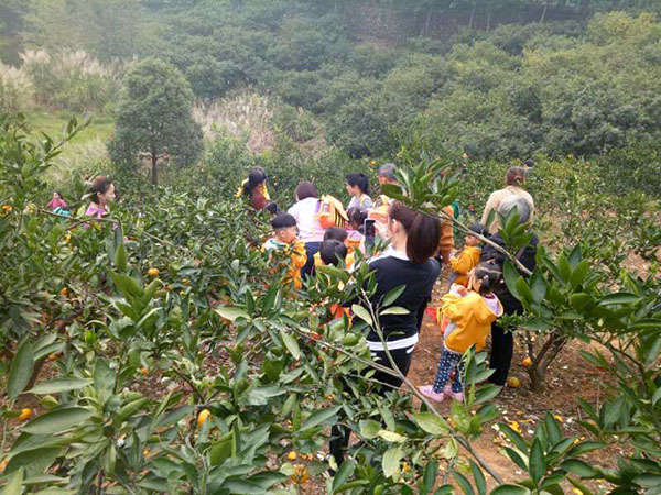 在這綠樹掩映,青水環(huán)繞的大自然中,各班精心組織了親子游戲,孩子們就像放飛的小鳥,在大自然中感受自由和快樂。游戲結(jié)束后,孩子們在爸爸媽媽、爺爺奶奶的帶領(lǐng)下進(jìn)入果園采摘桔子,撿板栗……果園里金色的桔子掛滿枝頭,孩子們身穿紅色、黃色的校服孩子容入綠色和金色的果園里,遠(yuǎn)遠(yuǎn)望去,就像一道道彩帶,在山中游動,為這果園增設(shè)了一道亮麗的風(fēng)景線。家長和孩子們在這山青水秀的中盡情嬉戲,歡笑聲響徹溶入山水之中。
