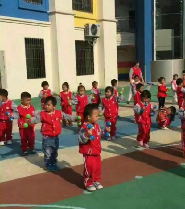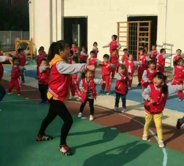 在整個評比中老師們能夠至始至終以飽滿的精神感染幼兒,清晰的口令、規(guī)范的動作無不給以幼兒鼓舞和信心。如:中大班小朋友的認(rèn)真、嚴(yán)謹(jǐn);小班小朋友的自由、奔放;老師的親切、自然的情緒感染了幼兒們,使幼兒積極投入到早操的活動當(dāng)中。同時各班教師還能在活動前將幼兒衣、褲、鞋等不便活動的因素給予排除,讓幼兒輕便活動、特別是幼兒整齊的著裝,像一朵朵小花,這更能展示出幼兒精神抖擻,從而有效地激發(fā)了幼兒參與活動的興趣。老師和孩子們都樂在其中。
