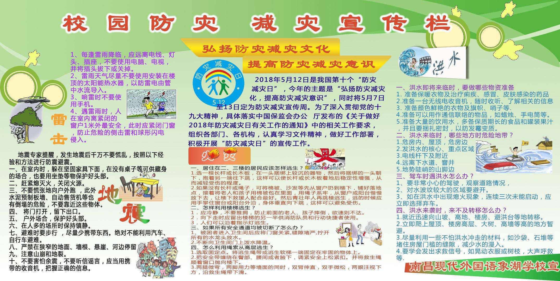 根據(jù)《南昌市教育局關(guān)于組織開(kāi)展“5.12”防災(zāi)減災(zāi)宣傳教育活動(dòng)的通知》文件的精神和要求,學(xué)校結(jié)合工作實(shí)際,開(kāi)展了形式多樣、內(nèi)容豐富的“5.12”防災(zāi)減災(zāi)宣傳活動(dòng),并取得了良好的宣傳效果。