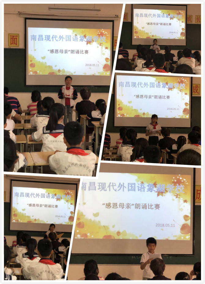 五月十一日下午二時(shí)許,南昌現(xiàn)代外國(guó)語象湖學(xué)校小學(xué)部六年級(jí),在教學(xué)樓五樓多媒體教室舉行了以“感恩母親”為主題的朗誦比賽。