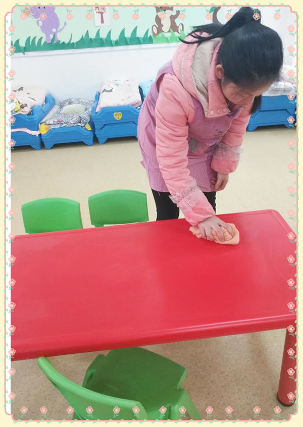 孩子們吃過點心后愉快的游戲去了,剩下老師勤勞的身影。