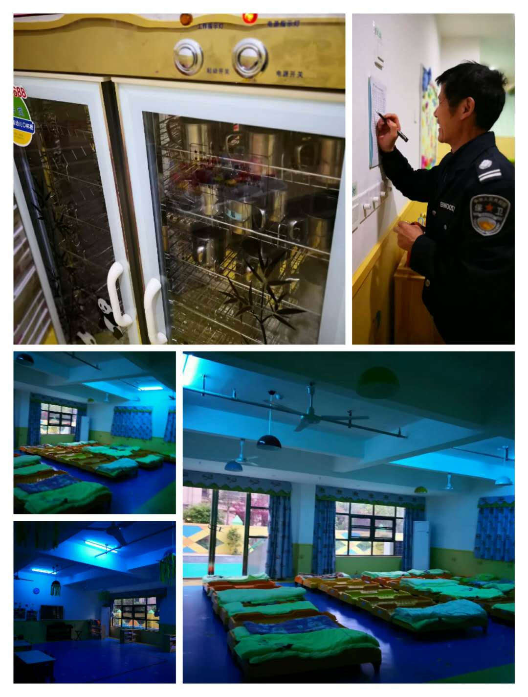 每周將幼兒用書拿出操場暴曬消毒,對教室及寢室進(jìn)行紫外線消毒,幼兒餐具及口杯的消毒工作。