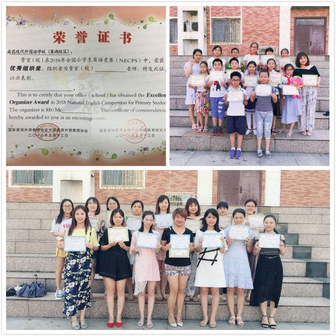 本次競賽,南昌現(xiàn)代外國語象湖學校經(jīng)過初賽選拔,共69名學生進入決賽。從初賽到?jīng)Q賽短短一個月的時間,由英語教研組長負責組織有針對性地進行輔導,老師之間經(jīng)常在一起相互交流輔導方法,商討難題,并做到每天跟家長溝通與交流,讓家長配合督促孩子在家完成復習任務。功夫不負有心人,在決賽中,有九名學生獲得了國家級獎;有18名學生獲得市級一等獎;35名學生獲得市級二等獎;8名教師獲得“全國優(yōu)秀指導教師”光榮稱號;學校榮獲全國小學生英語競賽(NECPS)優(yōu)秀組織獎。本次比賽獲得優(yōu)異成績,是對參賽學生刻苦學習的肯定,是輔導老師辛勤指導的回報。