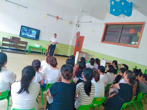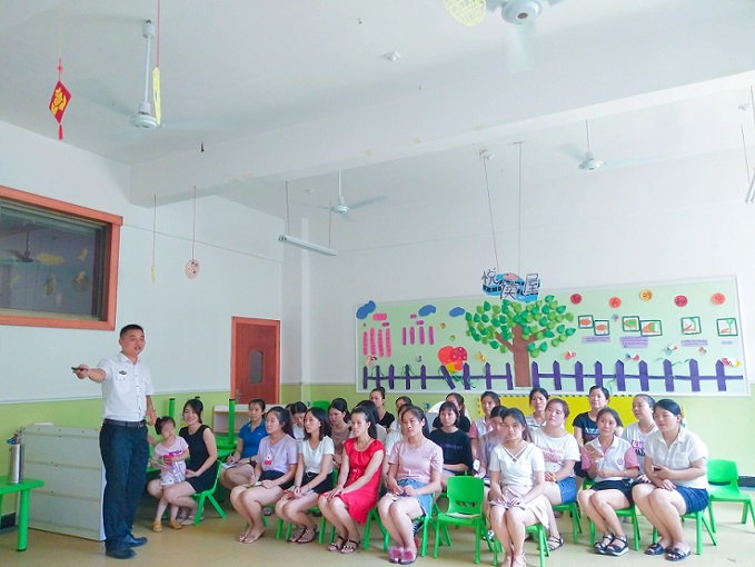 為進(jìn)一步提高幼兒教師的消防安全意識(shí)和自防自救能力,全面推進(jìn)校園消防安全宣傳工作,8月29日下午2點(diǎn),園外園·芳草園特邀消防部門李教官,到園區(qū)對(duì)全體教職工開展一次圖文并茂的消防安全知識(shí)培訓(xùn)。