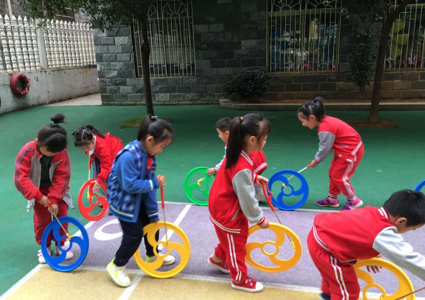 主要的鍛煉項(xiàng)目有爬行墊、跨欄、平衡木、風(fēng)火輪等,老師們利用這些豐富的器械,設(shè)計(jì)出很多好玩又新穎的障礙賽,鍛煉幼兒的平衡能力,以及手部和腿部肌肉的運(yùn)動(dòng)。孩子們?cè)谶\(yùn)動(dòng)中收獲快樂(lè),鍛煉身體。引導(dǎo)幼兒自主選擇器材的開(kāi)放式鍛煉,讓孩子們不再局限于規(guī)定的一方小天地,不再在老師的指揮棒下運(yùn)動(dòng),他們可以玩到更多的器具,真正做晨間鍛煉的主人,達(dá)到積極有效的鍛煉效果。