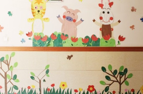 老師們集思廣益,利用各色各類(lèi)紙、板、盒以及其他可再利用的材料,通過(guò)畫(huà)、剪、貼、折、編等多種方式,布置出了一幅幅主題墻飾。在幼兒園領(lǐng)導(dǎo)帶領(lǐng)下,大家群策群力,從教室內(nèi)外墻壁、吊飾物、美麗花園、區(qū)角活動(dòng)等幾個(gè)方面進(jìn)行設(shè)計(jì)裝飾。