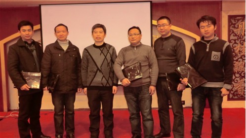 會上,劉堅(jiān)對2012年度完成簽訂挑戰(zhàn)書任務(wù)的人員進(jìn)行頒獎,并親自為每位獲獎?wù)咚蜕狭擞晒咎峁┑墓P記本電腦一部。獲獎人員分別是萬科營銷部雷安民、吳志方、胡星,響亮營銷部李德生以及多爾金營銷部陳江。