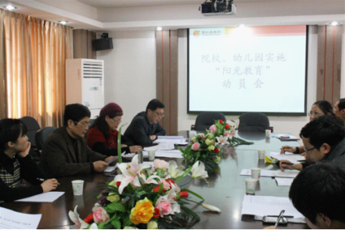 會上,參會人員均發(fā)表了個人對“陽光教育”的理解,并表示學校(幼兒園)將積極配合集團長期開展學校陽光教育活動,并且落到實處。