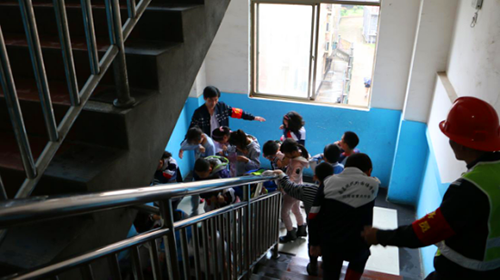 在消防疏散演練環(huán)節(jié),隨著警報(bào)聲的響起,演練正式開始,接到火情,聚龍物業(yè)消防安全應(yīng)急小組立刻啟動(dòng)應(yīng)急方案,派人趕到現(xiàn)場(chǎng)組織師生有序撤離。所有師生都用毛巾、手帕等捂著鼻子,低著頭、彎著腰,貼著樓道右邊有序撤離到安全區(qū)域。整個(gè)演練緊張而不慌亂,人多而不擁擠,在聚龍物業(yè)安保人員以及老師的帶領(lǐng)下順利結(jié)束。