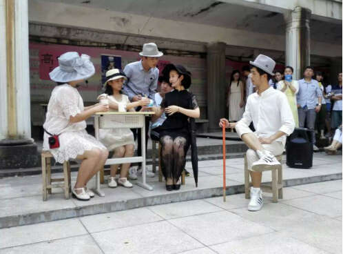 為了更好的還原話劇作品的原汁原味,學生們都愿意去開動腦筋去思考盡可能的讓自己融入戲劇的場景中。無論是從人物還是情節(jié)方面,都花了很大的功夫。從服裝的選擇,場景歌曲的設置到動作,舞蹈動作的練習以及表演神情的顯現無一不體現表演者們的努力與智慧。