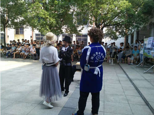 英語語言的學習的真諦不在于精通的語法而在于語言的交流與使用。為進一步引導學生真正的理解并發(fā)揮英語語言的藝術與魅力,2016年6月22日下午,南昌現代外國語學校(迎賓校區(qū))高中部在校園獨有的風景地——“小樹林”舉辦了一場別開生面的英語話劇表演。高中部全體學生參加了此次的話劇表演。