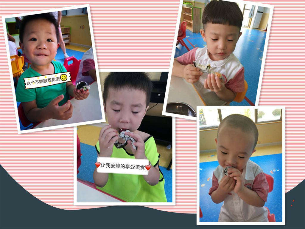 生活老師將壽司分到各個(gè)班級(jí),當(dāng)進(jìn)教室時(shí)小朋友們兩眼放光看著老師手上拿的壽司,吵著“我要吃,我要吃……”小朋友都迫不及待地想吃啦……