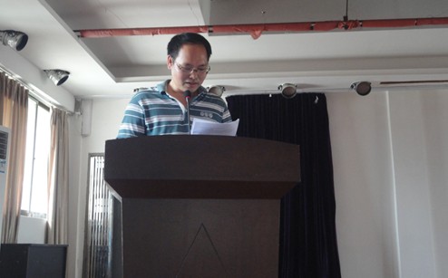 曠強軍副院長宣讀《江西工商職業(yè)技術(shù)學(xué)院深入開展黨的群眾路線教育實踐活動實施方案》